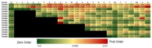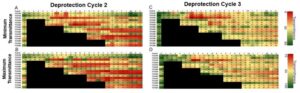 While average deprotection cycle counts provide a coarse measure of synthetic difficulty, a residue-level analysis is necessary to localize specific bottlenecks during synthesis. To this end, UV-Vis transmittance data that was recorded for each deprotection step was compiled into positional matrices for all PACAP analogues. These datasets capture minimum and maximum transmittance values per residue, enabling comparison across compounds.