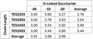 First, we looked at the average number of deprotection cycles needed for each compound. Analysis of Fmoc removal cycles revealed a glycosylation-dependent increase in synthetic complexity. On average, glucoside analogues required additional deprotection steps, while lactosylated analogues required even more deprotection cycles than the unglycosylated controls for complete deprotection (Table 1).