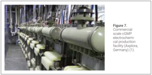 Notably, contract manufacturers are also building manufacturing capabilities on commercial scale. As mentioned above, flow electrolysis cells are employed for this purpose, as flow electrochemical reactors can be readily scaled up. The German manufacturer Axplora has reported a current production volume of over 1000 tons of per year of 3 different active ingredients in 3 production sites in Germany and India using flow technology (Figure 7)(24).